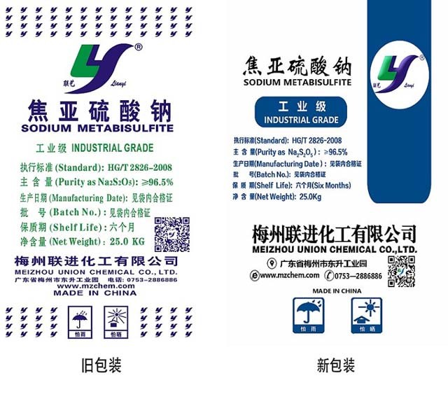 包裝更換通知:即2021年5月8號起聯(lián)藝牌焦亞硫酸鈉啟用新版包裝袋。