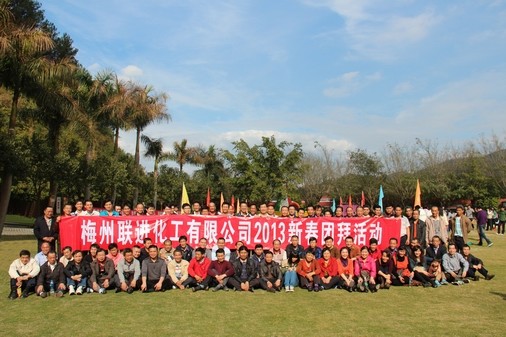 2013年2月2日,梅州聯(lián)進(jìn)化工有限公司在公司進(jìn)行2012年度總結大會(huì ),會(huì )后公司全體員工及家屬乘坐旅游大巴前往梅州市4星級旅游景區:雁鳴湖旅游度假村參加2013年新春團拜活動(dòng)。